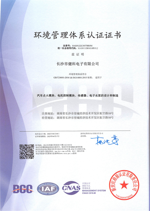 GB/T24001-2016環境管理體系認證證書: