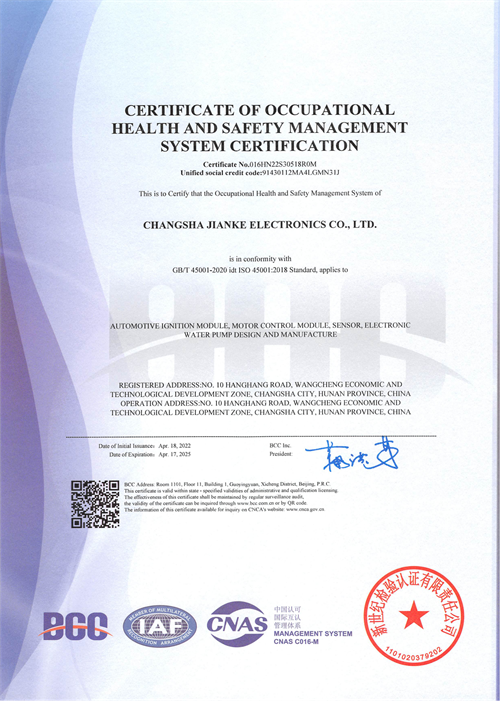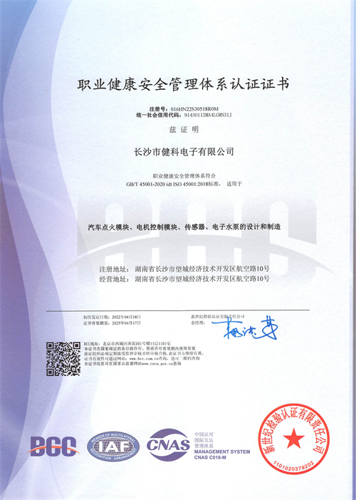 GB/T28001-2011職業健康安全管理體系認證證書: