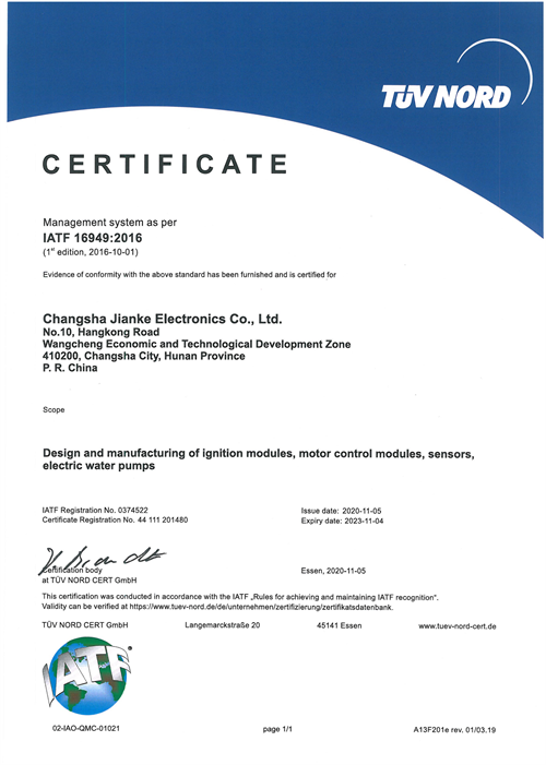 IATF16949:2016質量管理體系認證證書: