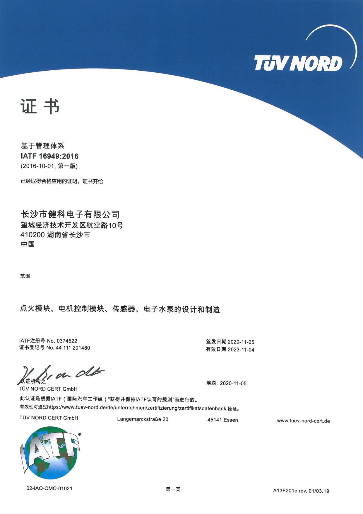 健科電子自2003年創立以來深耕汽車電子領域,現有深圳和長沙兩處生產基地,2019年長沙健科產業園投產,廠房面積35765㎡。專注于汽車電子水泵、無刷電機控制器、傳感器、點火模塊、熱管理控制器及其他域控的研發、生產和銷售,為全球OEM及Tier 1供應商提供配套服務。